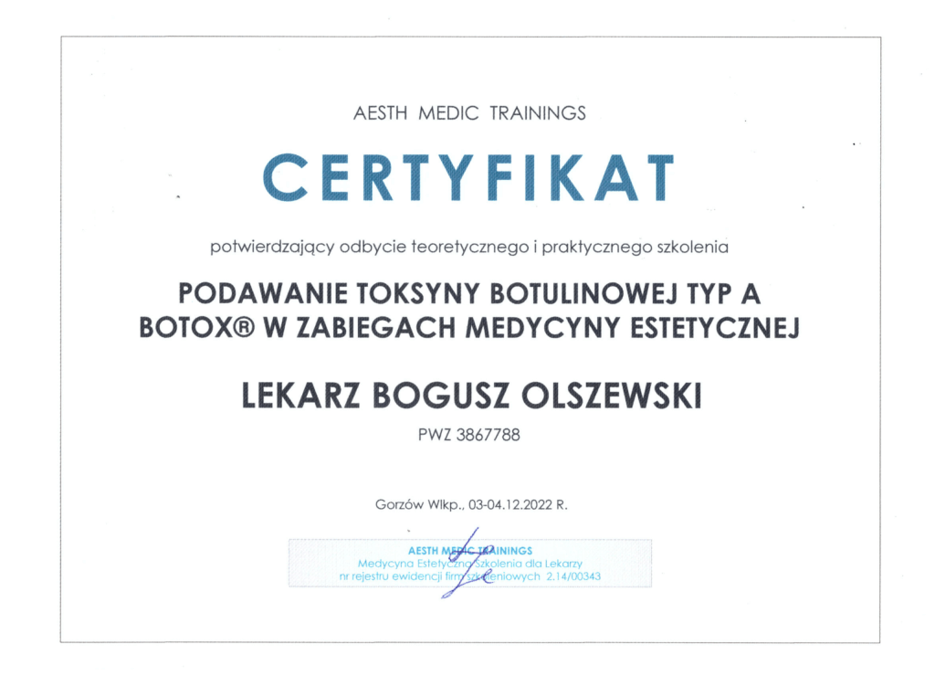 Ważne: Działanie toksyny botulinowej zaczyna być widoczne po 3-7 dniach.